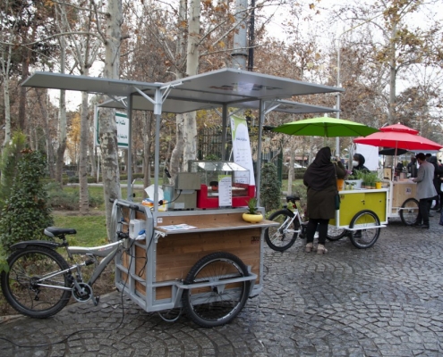 برای اولین بار در ایران کیوسکهای سیار فروش را جهت ایجاد کسب و کارهای ارزان و پاک با ساختار دوچرخه طراحی و تولید نموده است